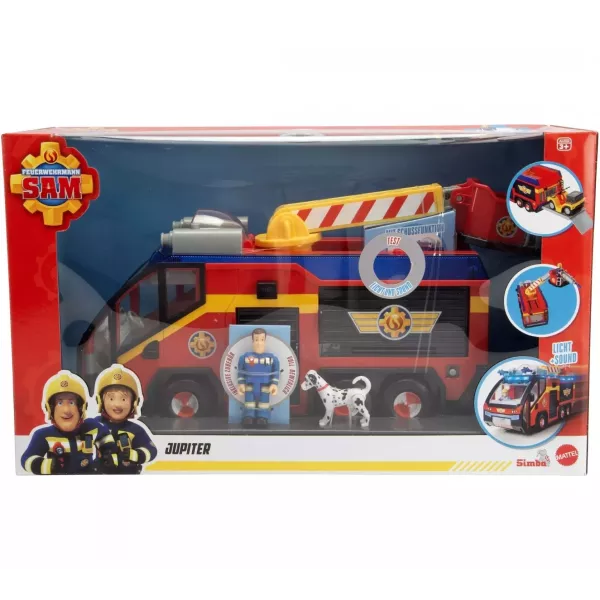 A Sam, a tűzoltó népszerű mesesorozatból ismert Jupiter tűzoltóautó készen áll arra, hogy a kis tűzoltójelöltek eljátsszák vele saját mentőakciójukat. A sárga-piros-kék színű autót maga Sam vezeti, akinek végtagjai mozgathatók, valamint vele van hű négylábú társa is. A jármű vízágyúja mozgatható, így mindegy, hogy a bajba jutott épület emelete vagy földszintje áll-e lángokban, a tűzoltás sikere garantált. A jármű fény- és hanghatásokkal rendelkezik, így igazán élethű a játékélmény.